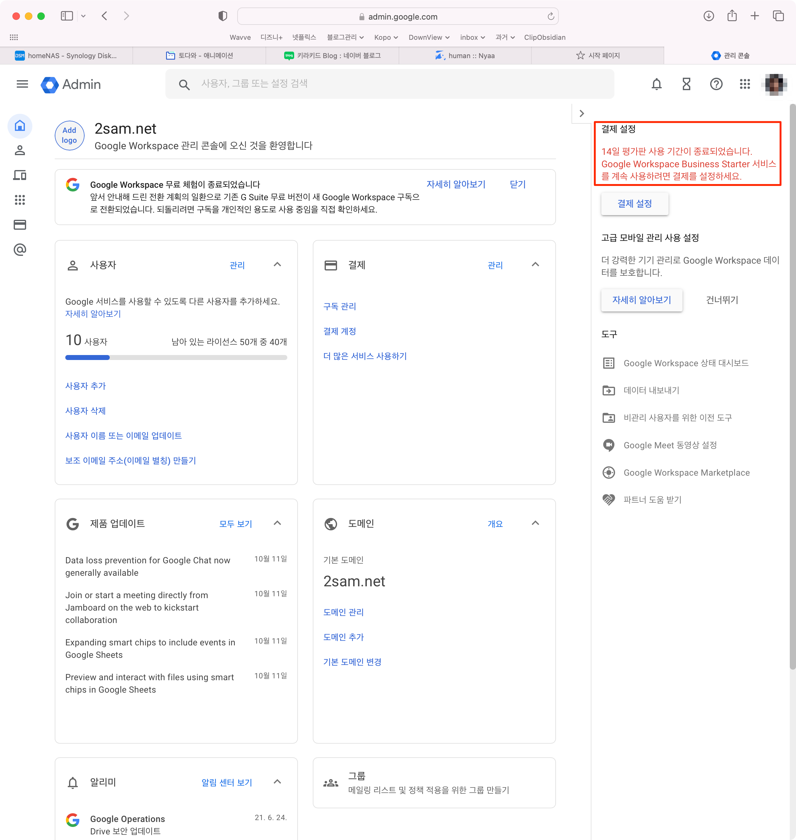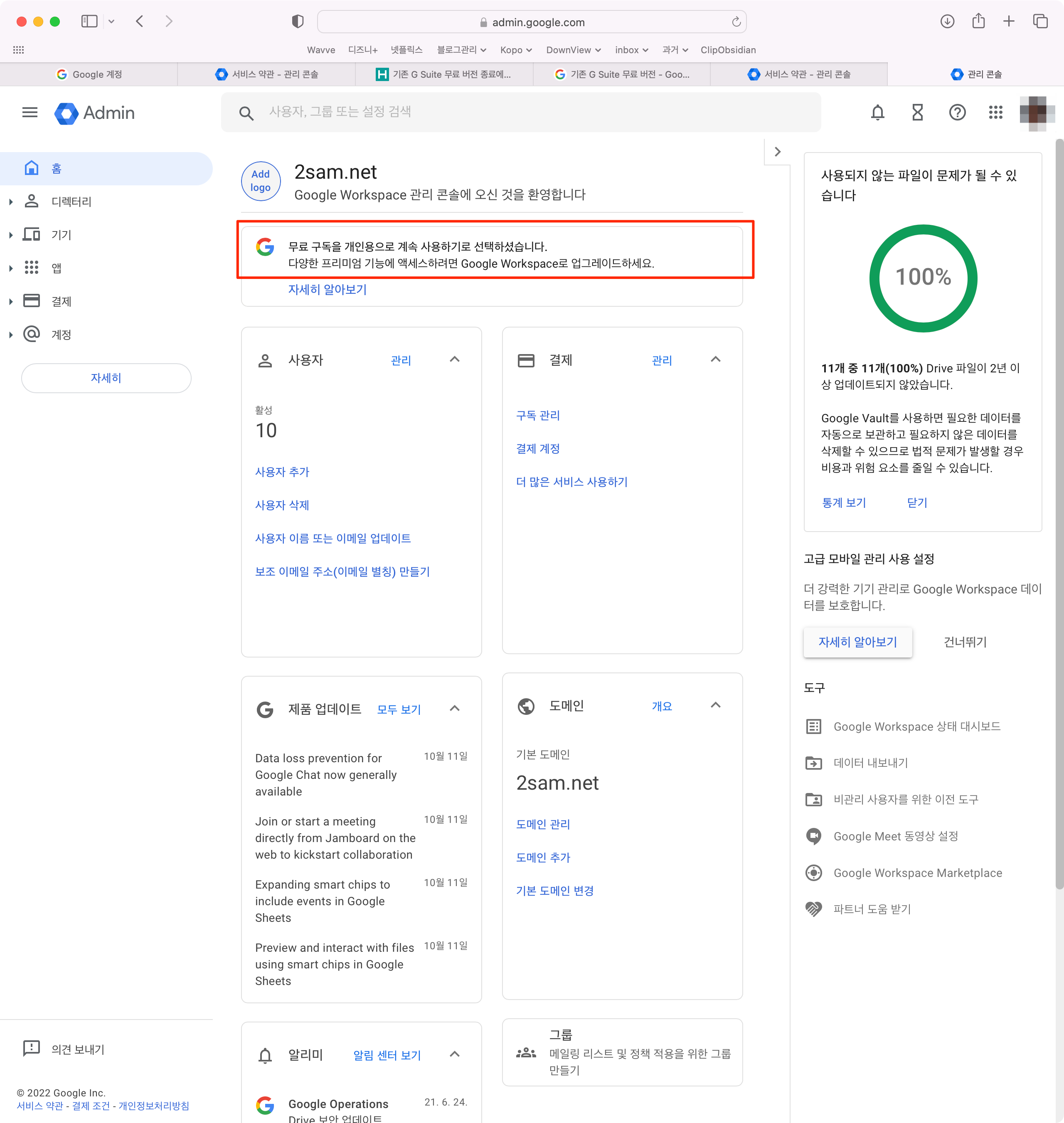 제가 Google Workspace로 업그레이드한 사실은 알게되었습니다....